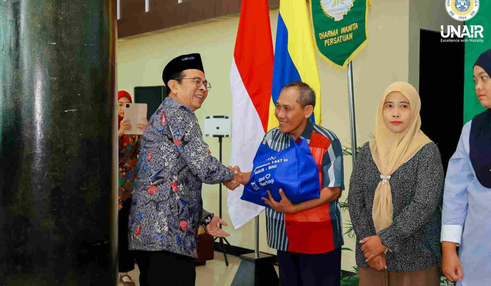 Pada Rabu (11/3/2026), Rektor Universitas Airlangga (UNAIR) secara simbolis menyerahkan paket sembako kepada perwakilan tenaga penunjang dan warga sekitar di Lobby Gedung ACC, Kampus MERR-C UNAIR. Kegiatan ini merupakan bagian dari kolaborasi antara Dharma Wanita Persatuan (DWP) UNAIR dan Bank Negara Indonesia (BNI), dalam rangka menyambut bulan suci Ramadan 1447 Hijriah. Penyerahan secara langsung ini bertujuan untuk menunjukkan apresiasi kepada tenaga penunjang seperti petugas kebersihan yang berdedikasi menjaga lingkungan kampus, serta menjangkau warga di delapan kelurahan sekitar kampus agar manfaatnya lebih luas dan membantu mempererat tali silaturahmi.